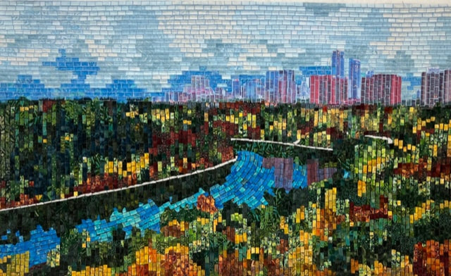 Fibre mosaic inspired by a photograph taken by Kevin Cantelon